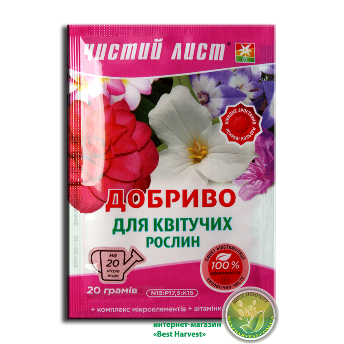 Добриво для квітучих рослин 20 г «Чистий лист», оригінал